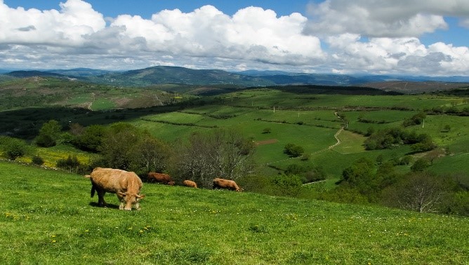 En las laderas orientadas al norte prosperan los bosques sombríos en los que destacan "carballos" (robles), castaños, abedules, acebos, hayas, avellanos, sauces y pinos. Es posible encontrar alcornoques y encinas que son especies vinculadas a climas más mediterráneos. El resto del territorio lo ocupan extensos matorrales, "toxos", "xestas" e inmensos pastos -Galicia siempre ha sido territorio de agricultura, pesca y ganadería. Estas señas de identidad marcan la fuerte relación de los gallegos con su tierra-.