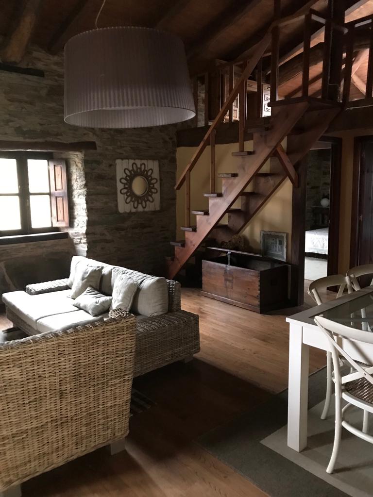 Se trata de una vivienda de uso turístico de 70 metros2 con capacidad para 4 personas. Consta de un amplio y confortable espacio destinado a cocina y salón comedor que destaca por su decoración rústica, con predominio de madera de castaño y piedra de la zona. Presidiendo una de las paredes hay una chimenea francesa que hará más cálida vuestra estancia.